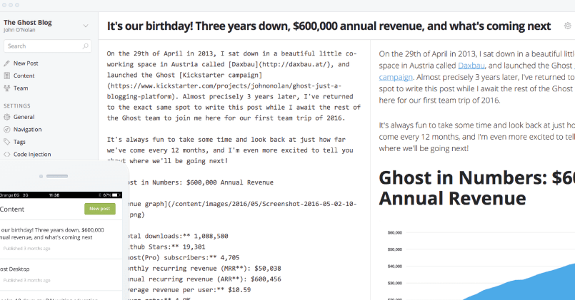 Ghost is a multi-purpose suite of publishing tools. A blogger is free to create content and check how it will be placed on a blog. This app supports markdown, syntax formatting, and text conversion to HTML, so that any text can be easy to read. Ghost manages blog content too. It adds and deletes tags and personalizes tag archives. You may even schedule time for your content publishing. Your posts look beautiful with meta tags of the most influential social networking sites.