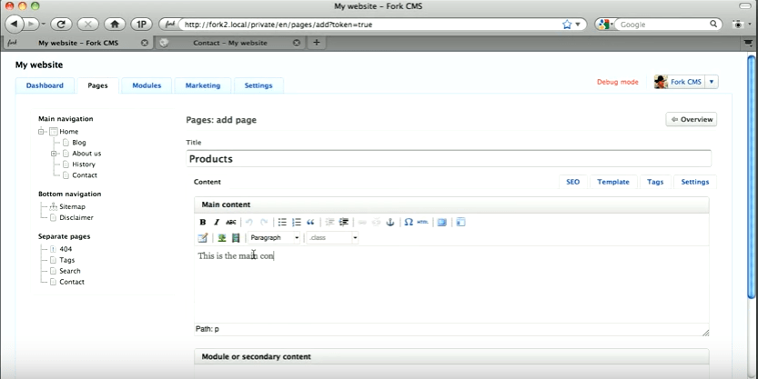 Fork CMS is another app that manages your content. It allows monitoring your content. It represents a set of tools to optimize your website. Fork CMS provides a set of tools such as Banners, Guestbook, Visitors, Photogallery, Analytics, and Tags, to manage your website or blog content as well as themes for your website. One more advantage of Fork CMS is its simple interface with dashboard and pages of your website to navigate.