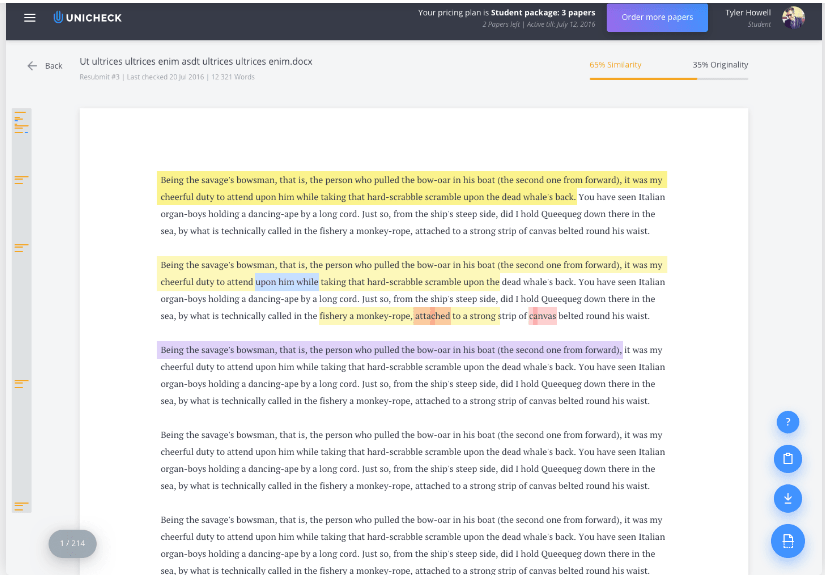 Make sure your blog post is original. Numerous bloggers out there may have already touched your topic. So checking your text for similarities will help you stay safe and unique. Unicheck performs a quick and accurate document check and identifies similarities if there are any. Scanning your blog post takes a few seconds. After it is completed, you get a report with highlighted text matches and links to sources that have the same content. This plagiarism checker also lets you adjust search settings by indicating the percentage of matching content to be skipped. This way you save time.