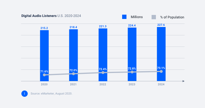 Benefits of this type of programmatic ad include a larger engagement with people because they don’t rely on the visual medium. Another major advantage is that audio commercials, especially in podcasts or music apps, cannot be skipped. Since there are no ad blockers for audio ads, people will receive full exposure to the advertisement.