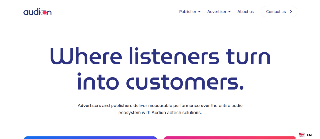 AudioOn is another renowned audio ad network on our list that is known to offer minute-level audio ad campaign optimizations. The platform offers Dynamic Creative Optimization that adapts the audio ads to the listener’s context based on weather, time, zip code, and day of the week.
