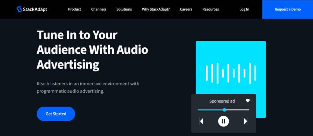 StackAdapt is one of the top DSPs in the market, doubling up as an audio ad network. The programmatic advertising partner utilizes ML and AI to sift through first-party data, contextual targeting, and lookalike targeting to deliver tailored ads to the listeners.