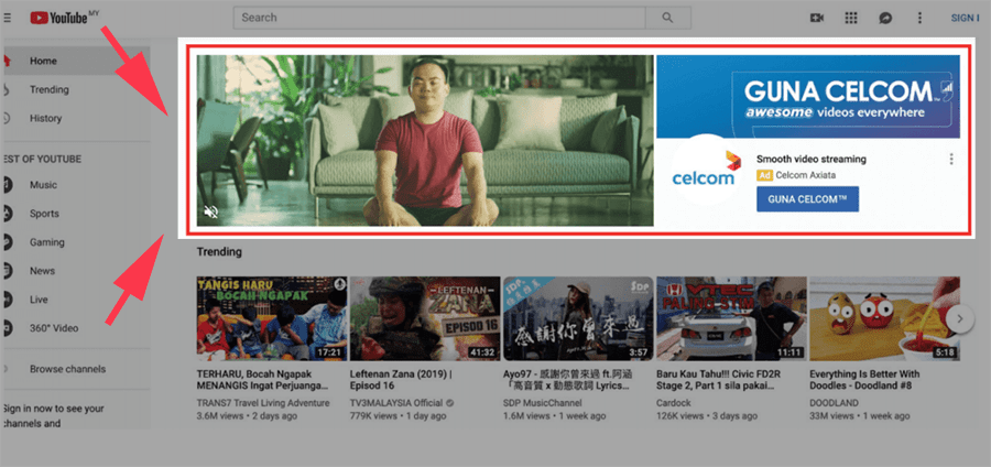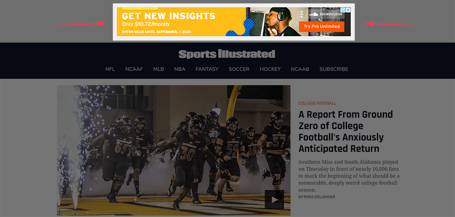 • Masthead ads take up the entire hero image space of a website or media platform. Most public video hosting platforms and streaming services offer masthead ad space to select publishers.