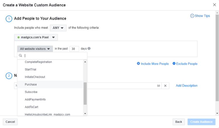 You can do this by using your Facebook pixel data and targeting people who have completed different events on your website. To create this audience, you can use your list of customers and add an arbitrary number to each customer. Then, you simply upload this list to Facebook and create your custom audience based on it. Make sure that you’ll update this list regularly to keep it relevant for your business.