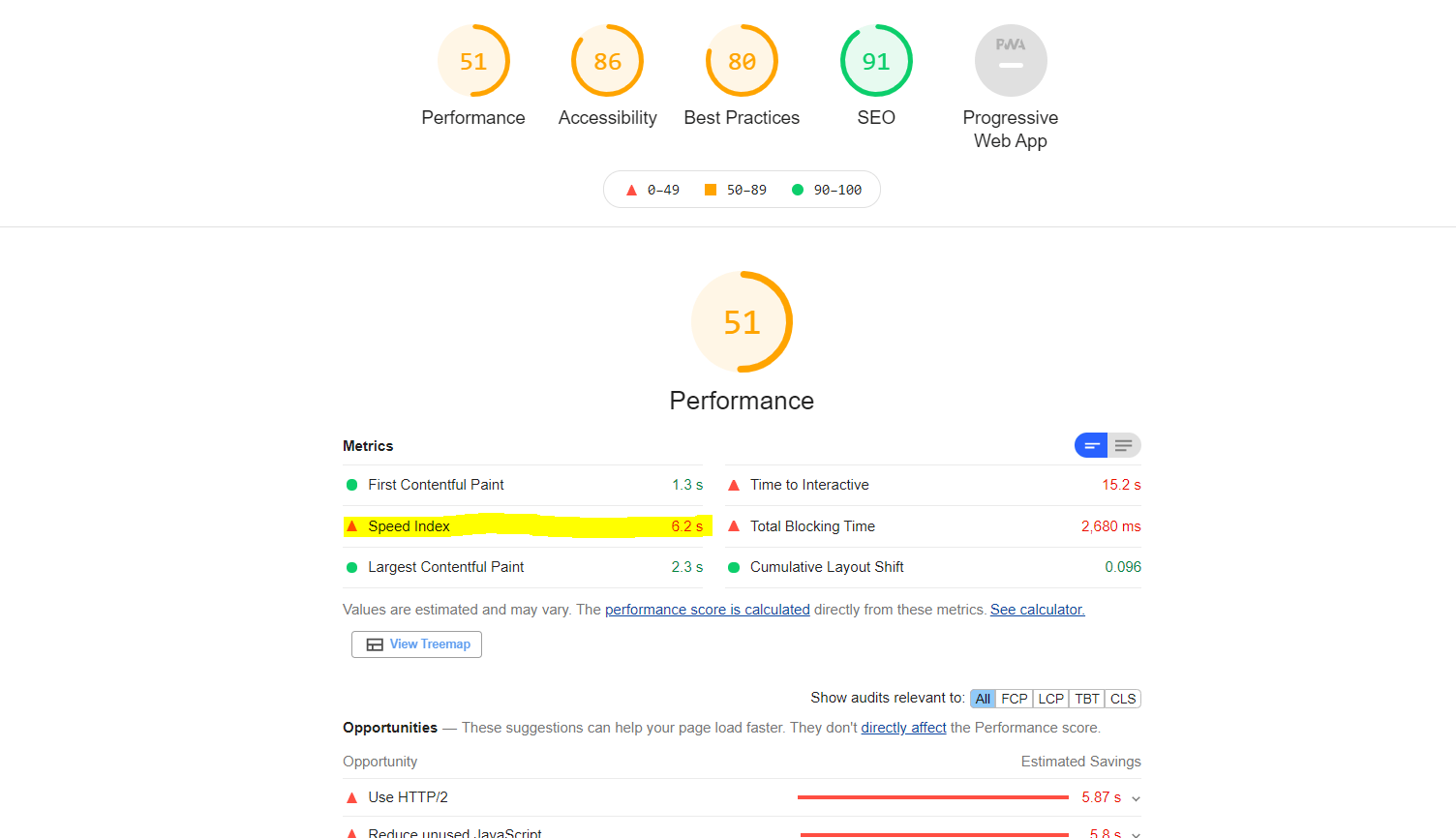 As depicted above, the report gives you a holistic view of your website’s condition, including the Performance > Speed Index which tells you about your current load time.