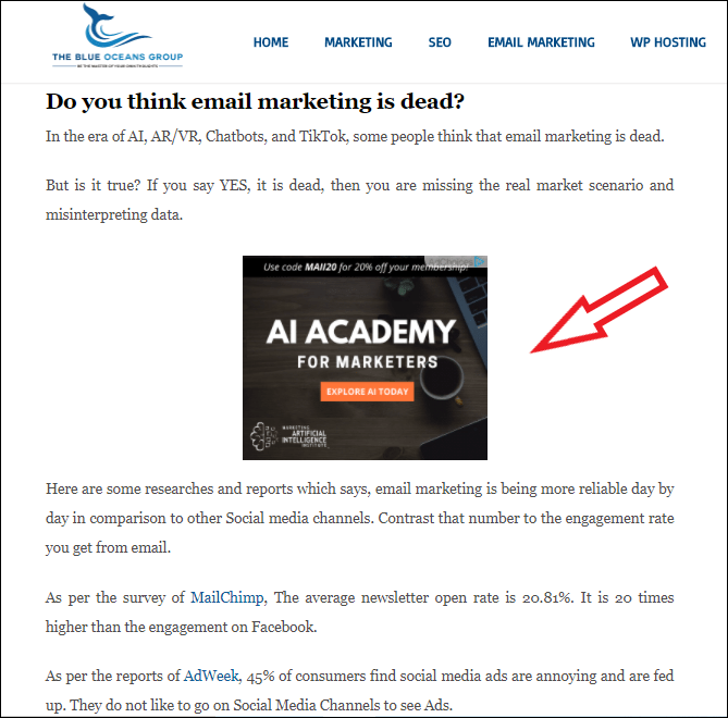 Putting your ad in the middle of the content is super effective as it is a great way to grab the attention of users. They might either click on the ad or engage with your site’s content through this ad placement.