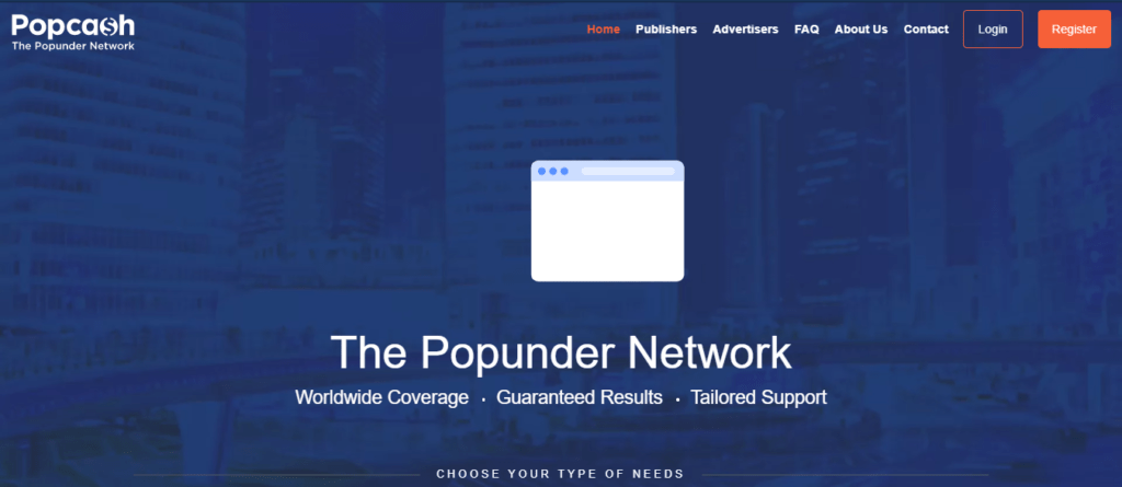 PopAds specializes in pop-under ad delivery, claiming to be the best provider of this ad type.