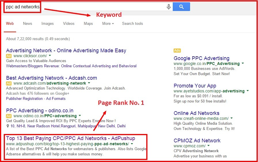 Ranking for the keyword “PPC ad networks” has put us on the first rank on the Google SERP.