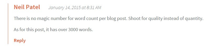 Here’s Neil Patel answering a comment on his blog post: