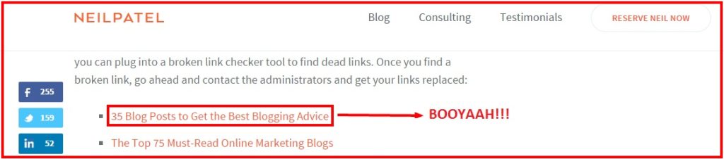 - Write valuable content mentioning industry leaders and then let them know about it. Create useful lists. Neil Patel naturally linked out to one of our posts in his blog post. Here’s the link to his article.