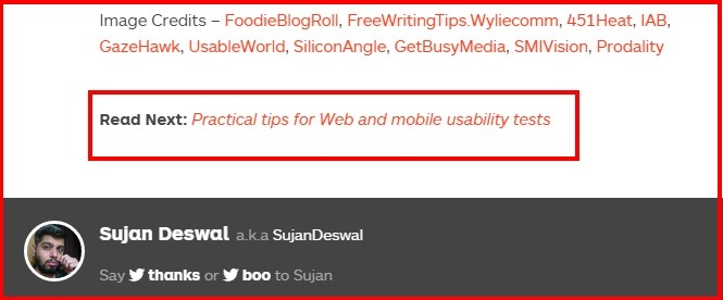 > Provide direction to your readers with the ‘Read Next’ label at the end of your posts, like TheNextWeb does.