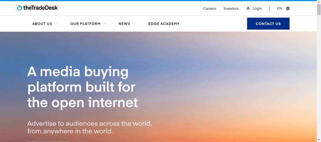 One of the most popular DSPs globally, the Trade Desk is known for its advanced targeting options and cross-channel buying capabilities. The platform supports display, video, connected TV, and audio, making it a versatile choice for advertisers looking to access multiple channels with precision.